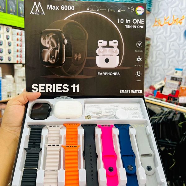 MAX-6000 Series 11 Smartwatch With Earbuds 7 Straps